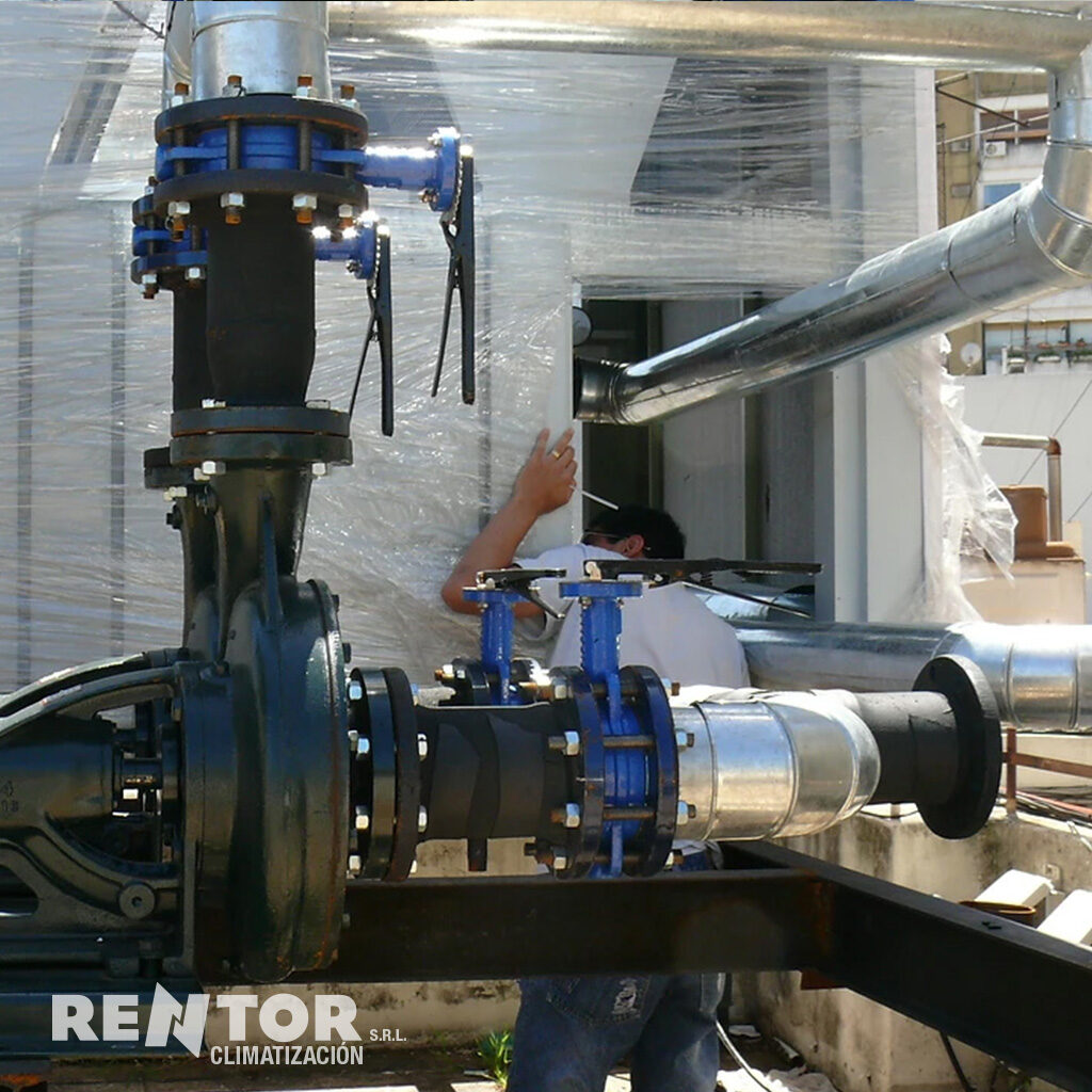 También se realizó la instalación completa de bombas de agua y cañerias de agua enfriada aislada con manta de goma elastomérica y chapa de zinc.