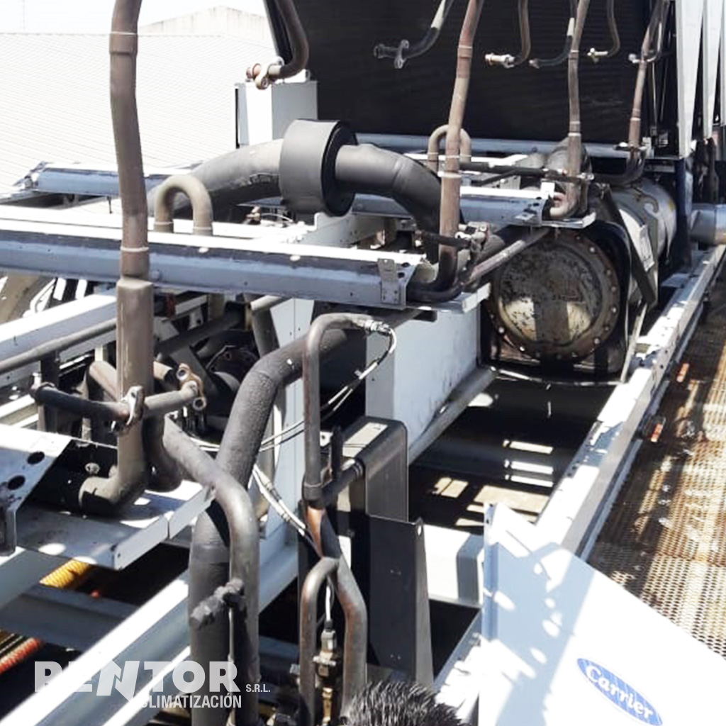 En Octubre del 2019 se inicio puesta en valor del Chiller 30xa1002, reemplazando sus 16 Serpentinas de condensador y realizando la reparación completa de uno de sus compresores tornillo de 90 TR.